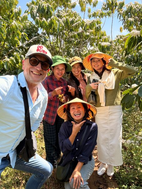 Acht junge Frauen haben sich mit der Farm selbstständig gemacht und produzieren mit viel Liebe Robusta Kaffeebohnen in konvensioneller und Bioqualität. Während ihres Besuchs auf der Farm hatten wir die Gelegenheit, die Kaffee Pflanzen zu besichtigen und sich intensiv mit den Anbauprozessen auseinanderzusetzen. In einer spannenden Besprechung tauschten wir Erfahrungen aus und lernten suns gegenseitig besser kennen. Der Tag endete mit einem gemeinsamen Essen, bei dem sie die köstlichen Kaffeeprodukte der Farm genießen konnten. Diese enge Zusammenarbeit und der direkte Kontakt zu den Produzenten stärken nicht nur die Bindung, sondern fördern auch eine nachhaltige Zukunft für die Landwirtschaft in der Region.